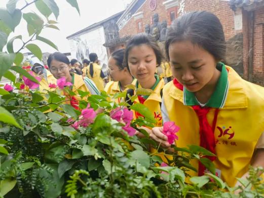 “童”看庭院,“童”话建设。组织儿童观察团成员到省级“美丽庭院”示范村崖门镇京梅村开展调研活动,用儿童视角实地观察乡村风貌和美丽庭院创建特色,深入了解京梅村艺术赋能乡村振兴的新思路,以“小主人”身份学以致用,为乡村振兴添光增彩。