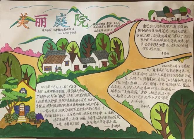 “童”绘家园,“童”晒愿景。开展“小手拉大手·共建美丽庭院”主题实践活动,以“从我做起、影响全家、带动邻里”为主题,把美丽庭院建设作为少年儿童劳动实践活动重要载体,引导少年儿童养成健康、文明、卫生的生活方式,制作美丽庭院海报,进一步发挥“小小主人翁”作用,实现“教育一个儿童,带动一个家庭,影响一个村社”的活动目标,形成更广泛的建设带动效应。
