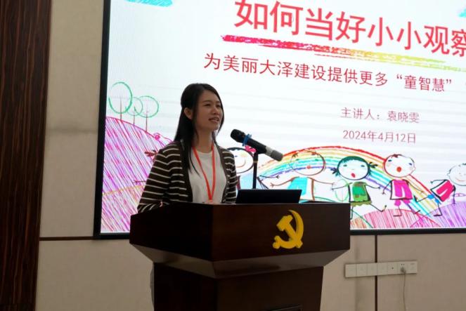 “童”心观察,“童”言未来。4月12日,成立“爱泽未来”儿童观察团,为大泽镇广大儿童搭建了一个儿童自由发声、展现自我愿景、培养责任意识、推动广泛参与的平台。