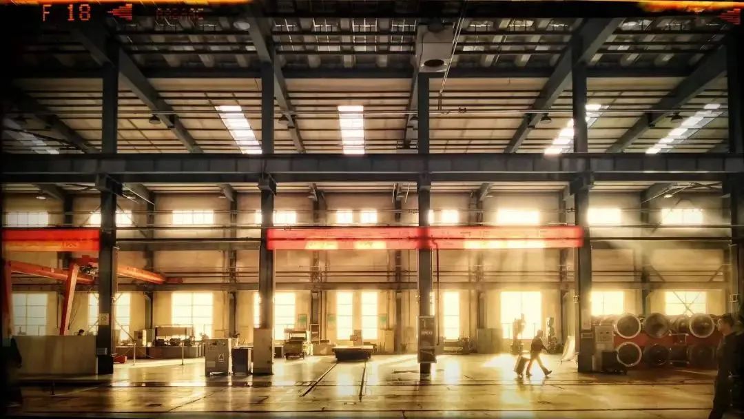 黄昏,检修库内,大板机务段检修工人宛如置身电影画面中。曲世宏 摄