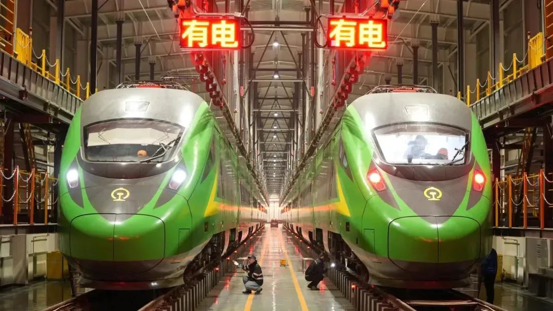 黎明前,整修后的动车组准备开始新一天的驰骋。王家耀 摄