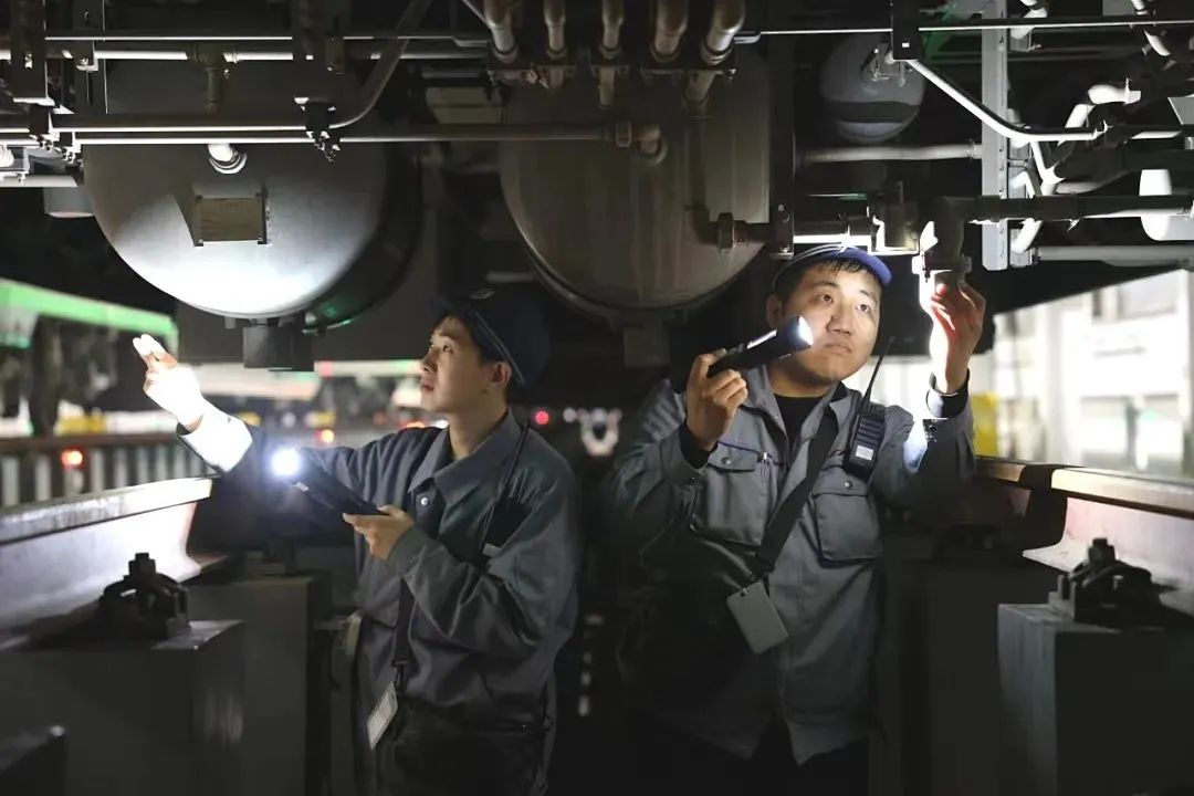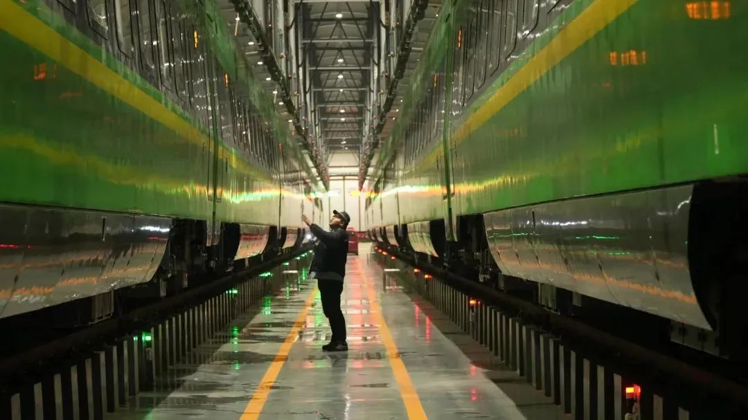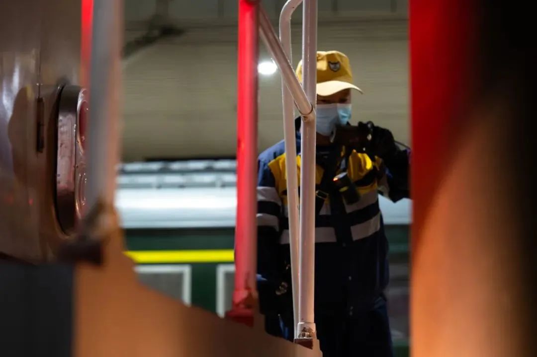 动集整备所职工为“绿巨人”进行状态检修。刘天一 摄每一辆回到“家”的列车