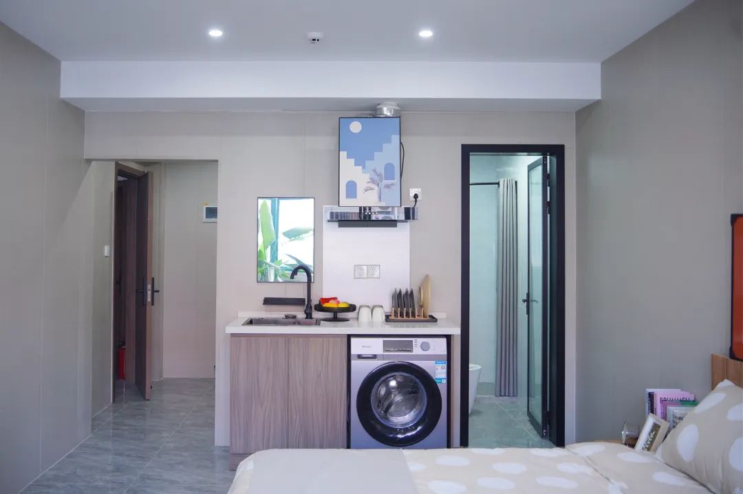 除了独立的生活空间外,人才公寓的一楼大厅被改造成了共享厨房,租户们可以一同烹饪,在人才公寓里感受回家般的温暖。