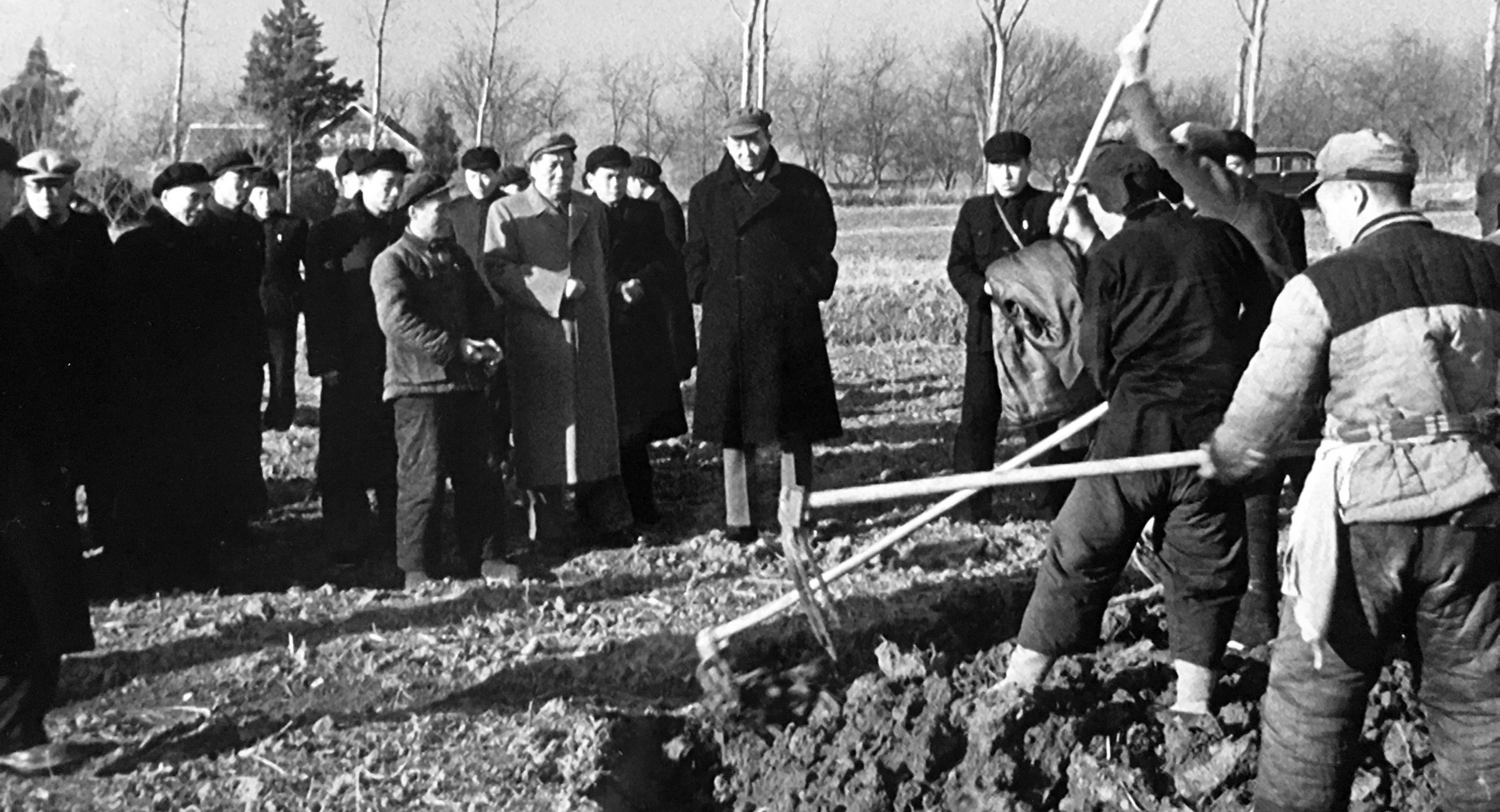 1956年1月11日,时值隆冬,在南京市郊区尧辰乡十月农业生产合作社,一个熟悉的身影来到田间地头,和社员们亲切交谈。