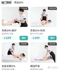 视频显示,定位东莞市,爱尚往约平台有“芳香spa+眼护”、“芳香spa+热灸”、“全身芳香spa”、“精油开背”等项目。
