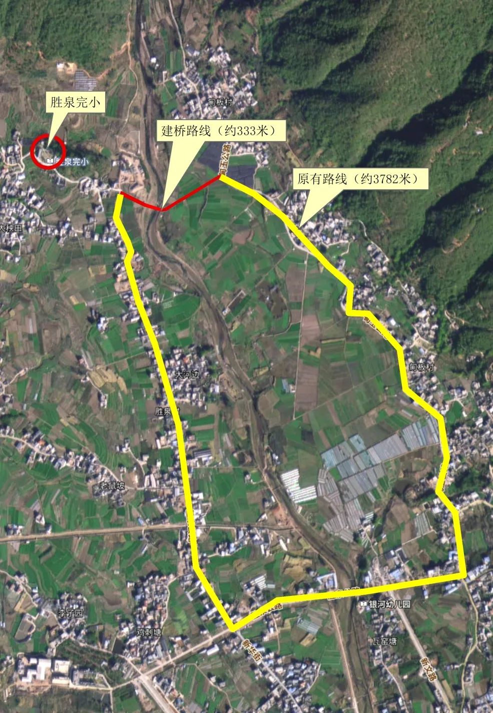 “想致富,先修路。”被一条银江河穿过,永平胜泉村一分为二,隔岸相望500米,到达对岸却只能绕行4公里,村里孩子上学、村民出行、产业运输都是问题。全村人盼望有一座跨河的桥。