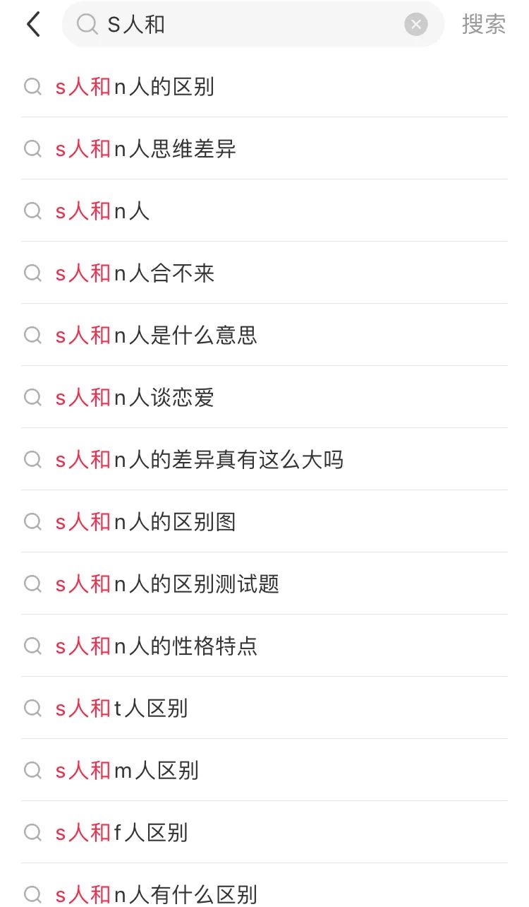 在探讨S人与N人的相关话题上,年轻一代充满好奇。在某社交平台上,输入关键词S人和N人,就能看到“S人和N人的区别”“S人和N人思维差异”“S人和N人合不来”“S人和N人的性格特点”等相关的热门搜索词条。