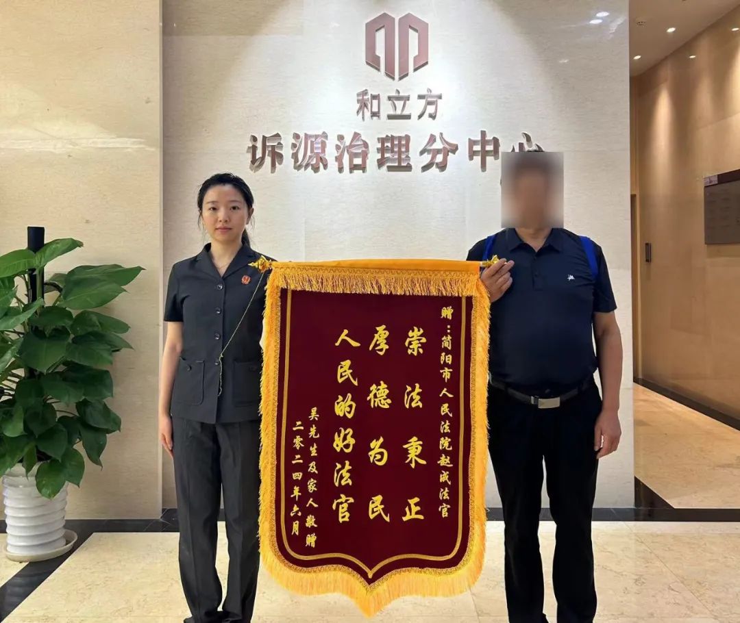 7月9日,简阳法院赵成法官收到一面写着“崇法秉正 厚德为民 人民的好法官”的锦旗,当事人感谢法官秉持“如我在诉”的理念,设身处地的换位思考,让他感受到了公正司法的温度。