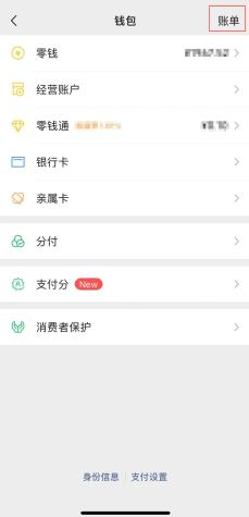 02在钱包功能主界面,选择顶部的“账单”功能。