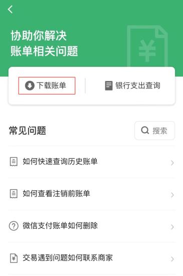 03在账单功能界面,点击顶部的“常见问题”按钮,该界面出现“下载账单”功能,点击该功能,进入账单下载界面。