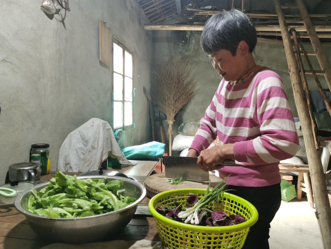 朱守珍和大侄女一起择菜。最大的孩子孔祥胜当年13岁,最小的妹妹孔祥秀才3岁。孔祥胜白天上学,放学回来手忙脚乱地给妹妹们做饭。“别人家的孩子回来,父母饭都做好了,他这么小,回来还要做饭做家务,我看着特别心疼。”朱守珍和丈夫商量了一下,拆掉了两家房子之间的一堵麻杆草墙,领回了侄儿侄女,两家并一家,四个孩子有了新家。那一年,她自己的大儿子才一周岁,正牙牙学语。