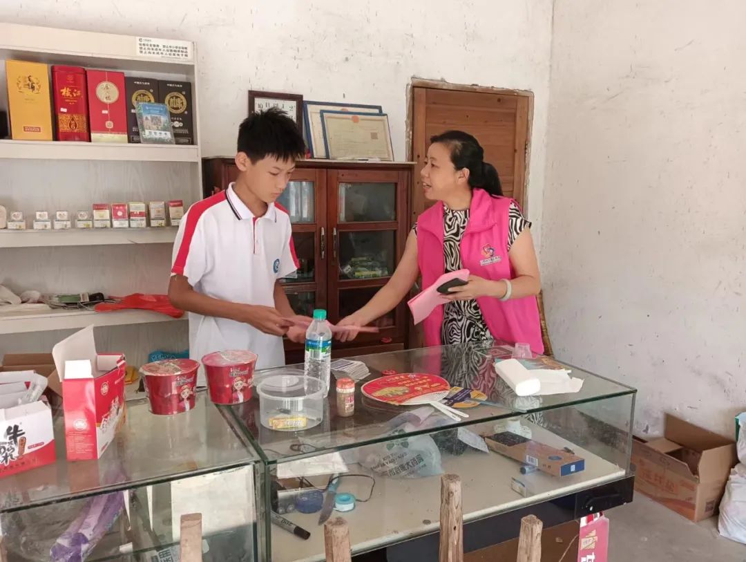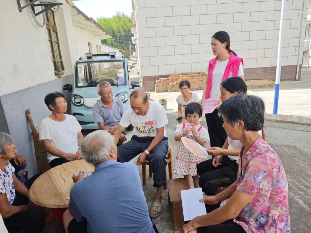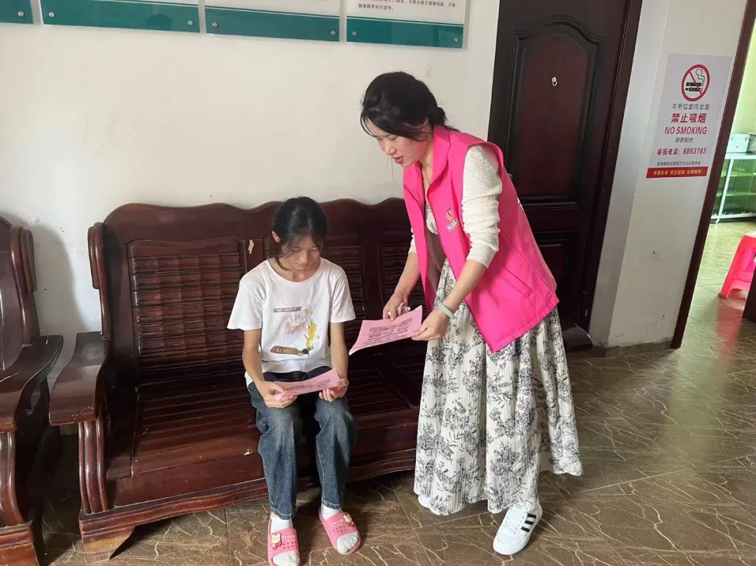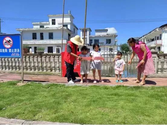 水西镇妇联组织工作人员进村入户发放防溺水宣传单,面对面地向儿童及监护人普及防溺水安全知识。