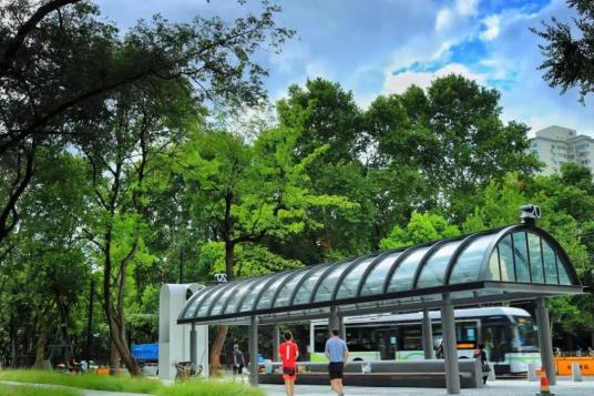 苏州河蜿蜒而过,百年校园、百年公园、百年古树、百年公交、百年道路、百年建筑在此汇聚。市民可以直接在树荫茂密的公园中穿行,增添了“公园城市”的体验感。地址