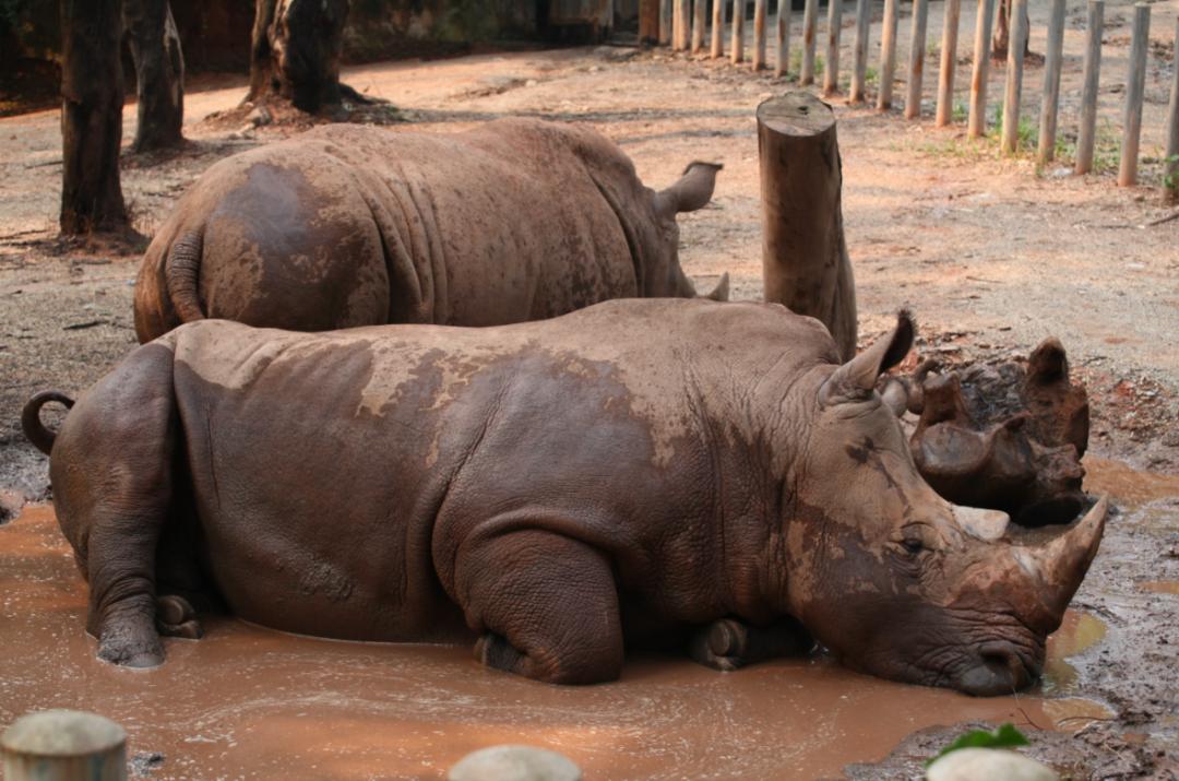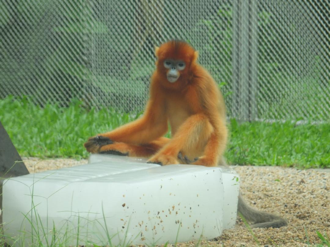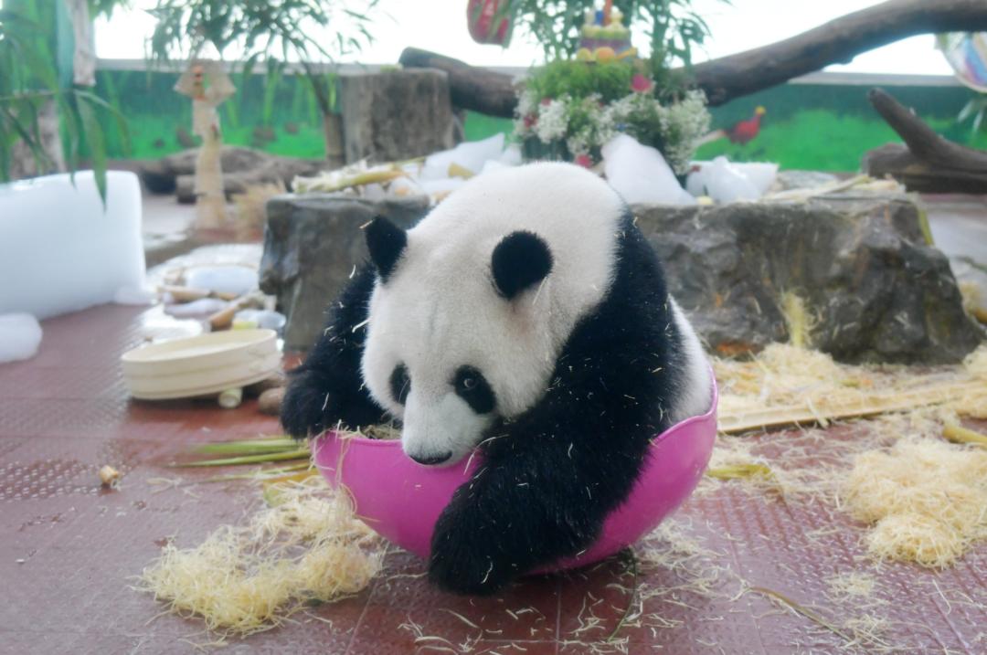 兄妹俩舒服地待在空调房里,悠闲地享用着新鲜竹子和冰镇水果,用手掌拨弄着厚实的冰块玩耍,偶尔在“私家泳池”戏水、泡澡,十分惬意。