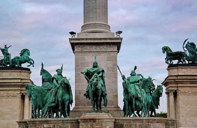 ▲匈牙利首都布达佩斯的英雄雕像公元896年,马扎尔人在杰出领袖阿尔帕德的带领下,抵达了潘诺尼亚平原。