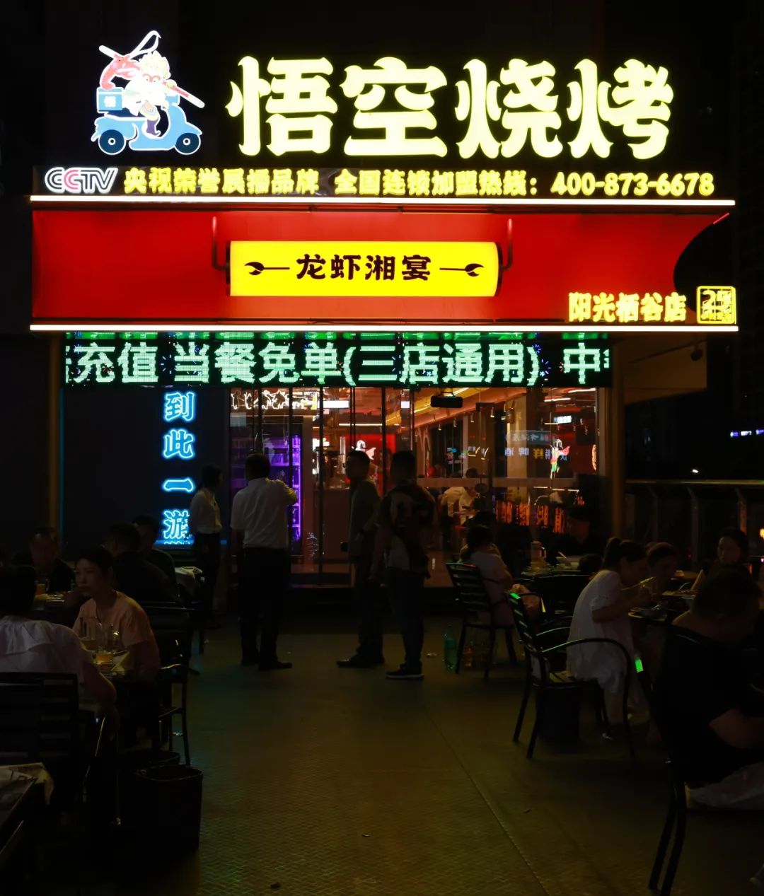 悟空烧烤悟空烧烤店如其名,招牌采用孙悟空金箍棒的造型,进店后,处处可见悟空的卡通形象,非常吸睛,当然,美食才是烧烤店的招牌。