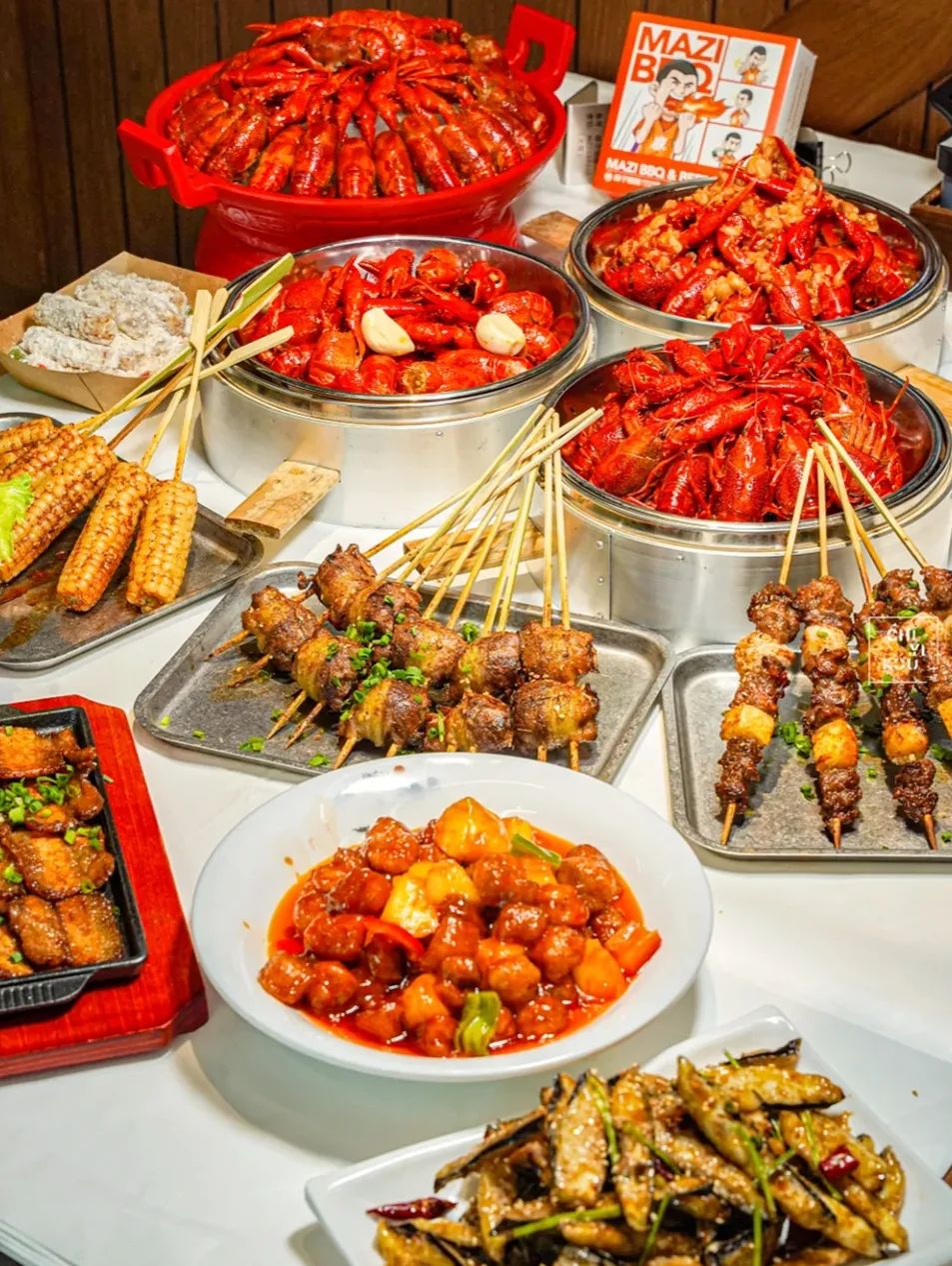 麻子烧烤麻子烧烤店生意火爆,麻辣小龙虾可谓每桌必点,鲜活的小龙虾直接下锅爆炒,再和辣椒、花椒翻滚爆炒出香气,每一只虾都裹着香辣的酱汁,令人垂涎欲滴。