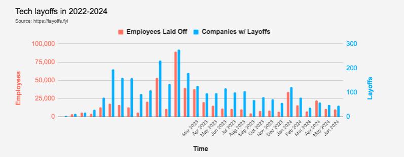 从统计图可以看到,24年裁员的力度甚至超越了23年。