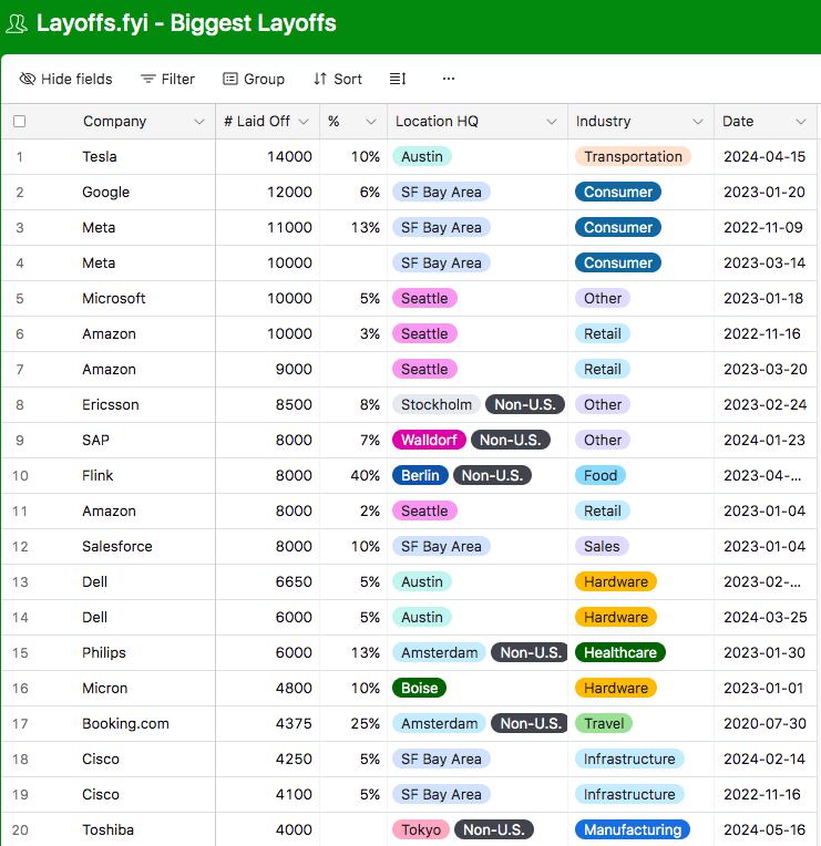 据统计,自2024年以来,已有362家企业裁员,涉及10.7万人,其中包括特斯拉、谷歌、微软等大厂。