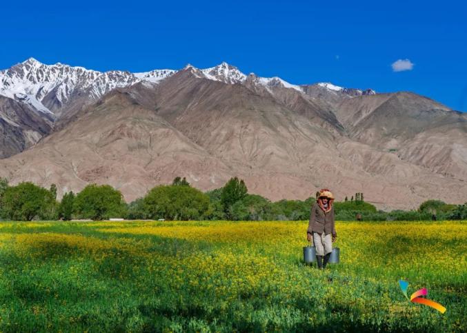 金灿灿的油菜花鲜亮醒目。塔县融媒体中心供图在这里