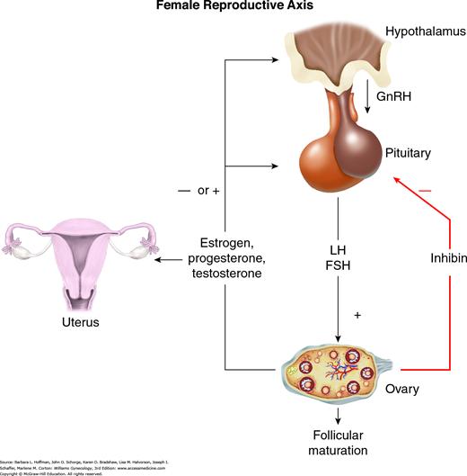 下丘脑-垂体-卵巢轴呈现正反馈和负反馈回路。▲图片来源:https://obgynkey.com/