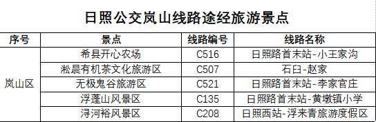 除了“山海联动”旅游直通巴士之外,还可以乘坐以下公交,共赴一场与美景的约会,尽览五莲大好河山。