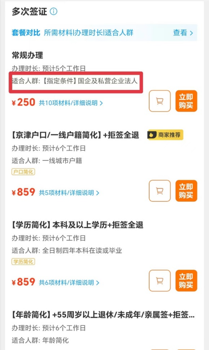 二是虚假套餐。部分办签公司在线售卖低价优惠套餐,但实际产品附带高门槛限定条件,如“限定企业法人”,或设置无法获取的办签材料。更有甚者,在消费者下单后才告知套餐无法办理,借此引导其转化至其他高金额套餐。