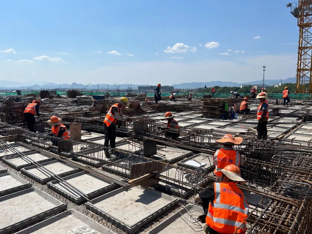 浦江县冷链物流建设项目是2023年度、2024年度省服务业高质量发展“百千万”工程重大项目。自开工以来,县产投集团坚持项目为王、效益为本,推进项目有序建设。上午,记者来到冷链物流建设项目施工现场,烈日下,各类材料正有序进出场,工人们戴着厚厚的手套铺扎钢筋。据介绍,该项目从今年1月开始建设,到现在主体建筑结构已经完成70%左右的建设。