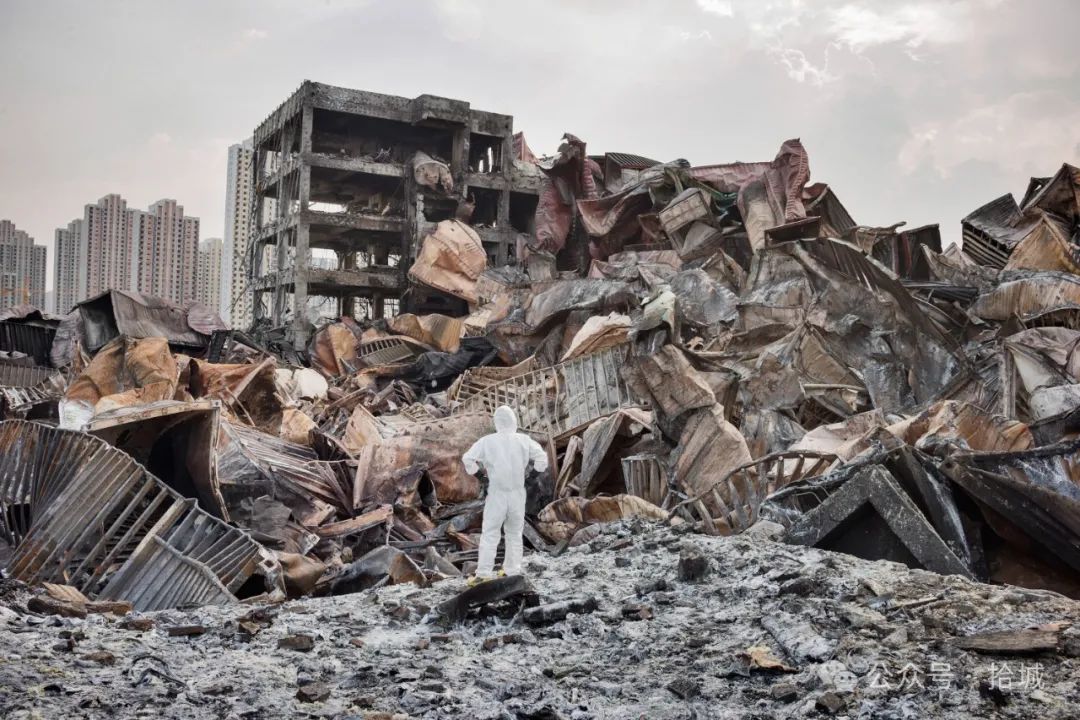 2015年8月15日,天津,大爆炸后留下的废墟。