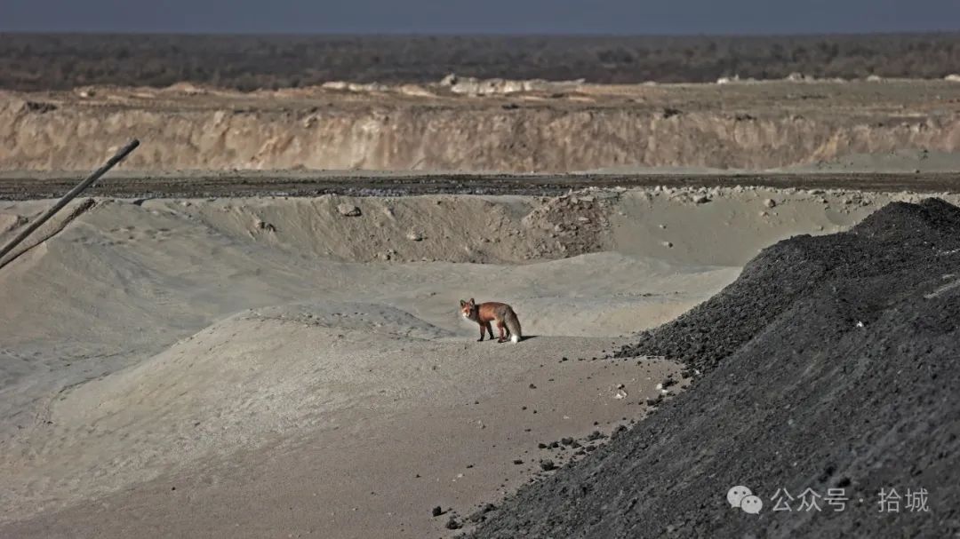 2014年11月,新疆维吾尔自治区卡拉麦里山自然保护区,一只狐狸出现在非法排放的工业固废中。
