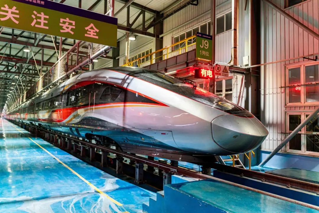 CR400BF-BS型复兴号智能动车组最高运营时速为350公里,是我国自主研发的具有完全自主知识产权的最新一代智能动车组。