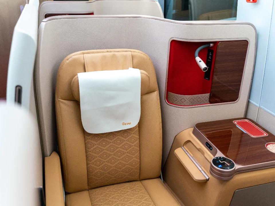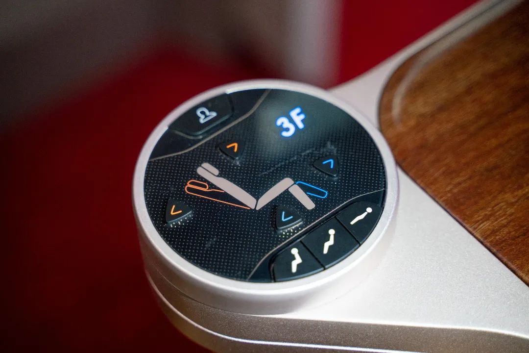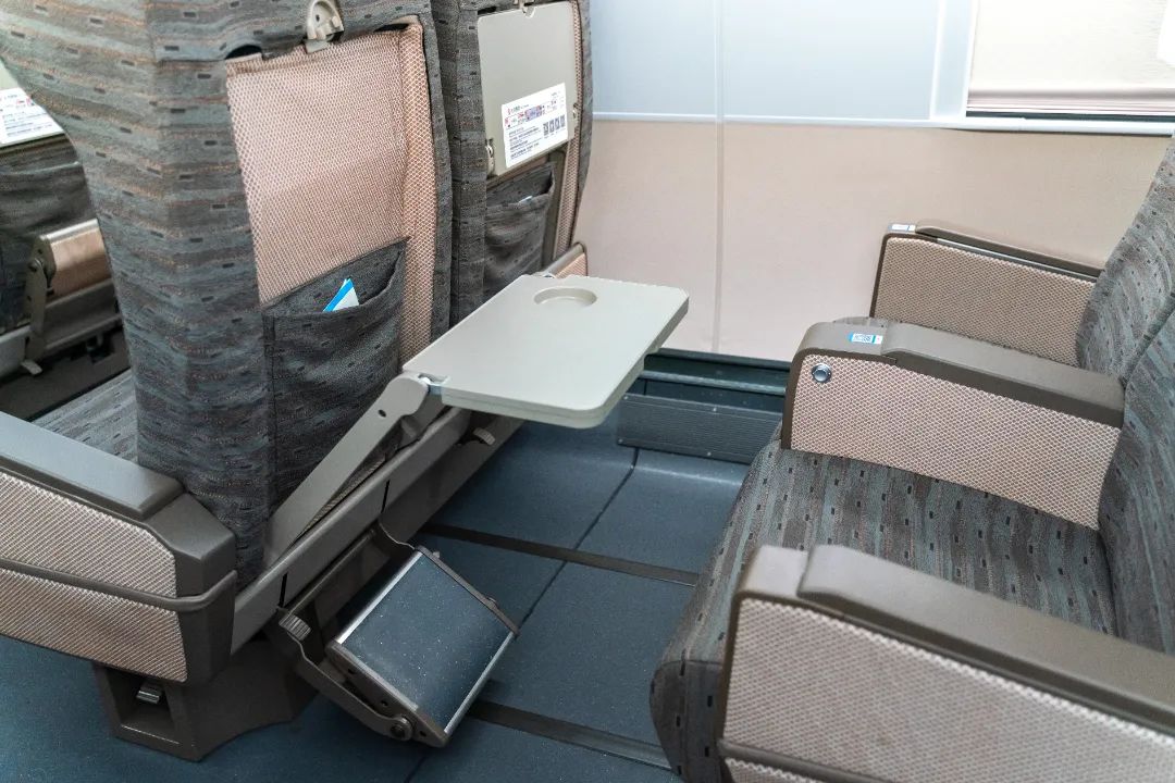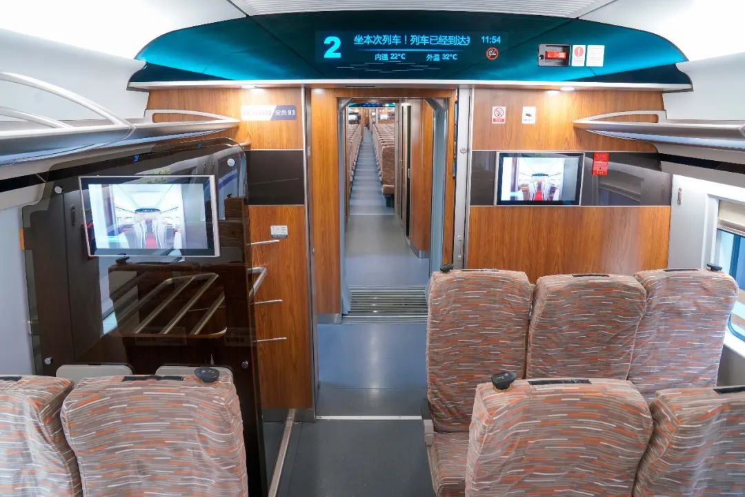 一等座增设优选一等座席,使用“贝壳式”电动座椅。前后排座椅间距进一步拉大,座椅可180度旋转,靠背和腿部角度可独立调节。