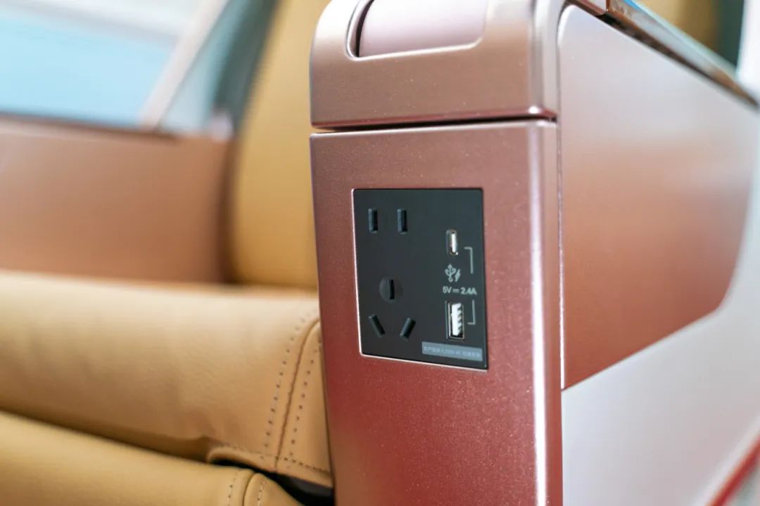 各席位座椅均设置Type-C充电接口方便旅客为手机、电脑充电。