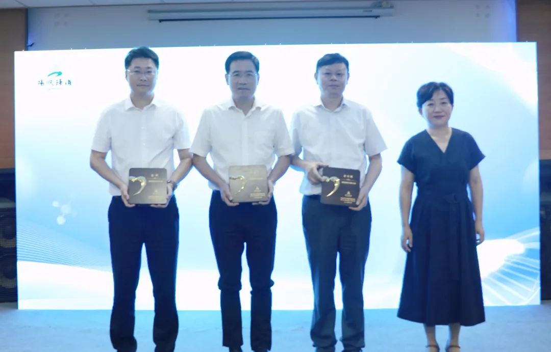 区卫生健康局党委书记、局长王斌为浙江大学求是特聘教授、博士生导师许正平,浦阳镇新乡贤联谊会副会长、上海萧山商会会长俞利强,浦阳镇新乡贤联谊会副会长、浙江传化乡村发展有限公司总经理陈科颁发新乡贤名医馆首批医疗共富大使聘书。