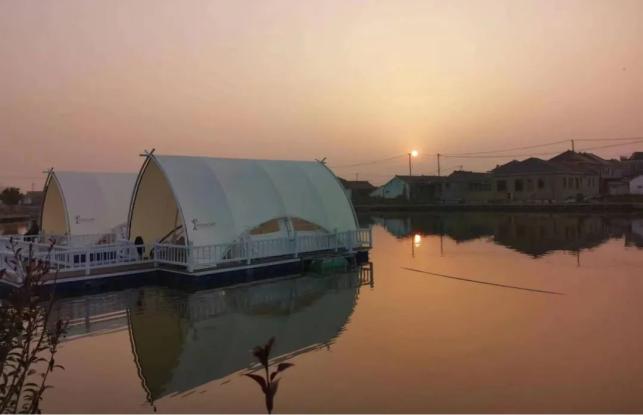 夜晚睡入漂浮于水上的帐篷体验睡在母亲怀里般轻轻晃动的宁静感