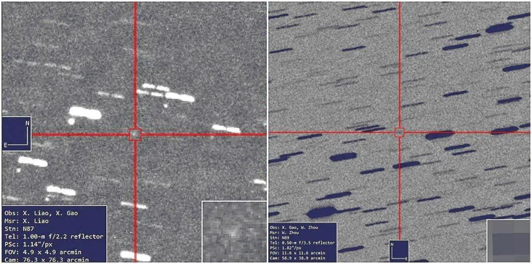 NAS小行星搜寻项目发现的图像(左)及半米望远镜后随观测的图像(右)。