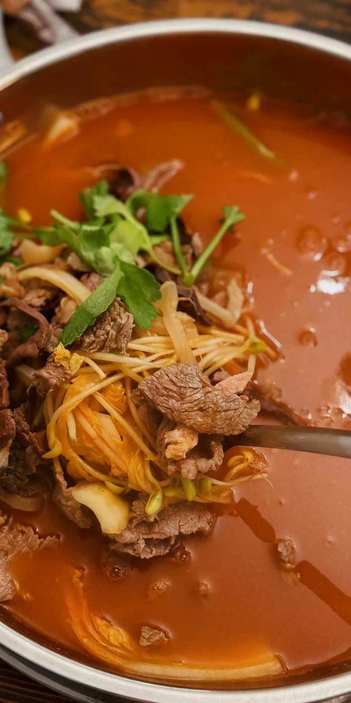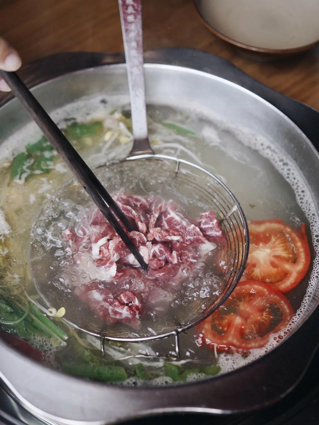 用白酸汤加入当地的木姜子油和青花椒来煮牛肉,低调地酸衬出了牛肉的丰美,一时间酸、鲜、香、厚兼具。