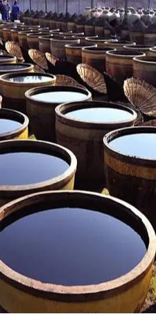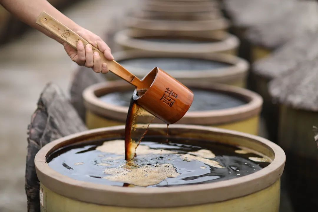 在贵州赤水市一带,至今流传着一种传统古法制醋工艺一一赤水晒醋。赤水晒醋始于明朝万历年间,以当地优质大米、糯米、纯中药制作醋曲,经过蒸煮、酿晒、发酵等30余道工序制作而成,具有色泽柔和、酸香爽口等特点。