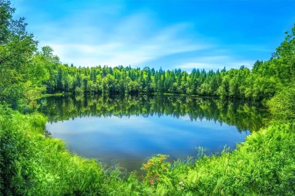 远望宛若一轮皎月,镶嵌在林海之中