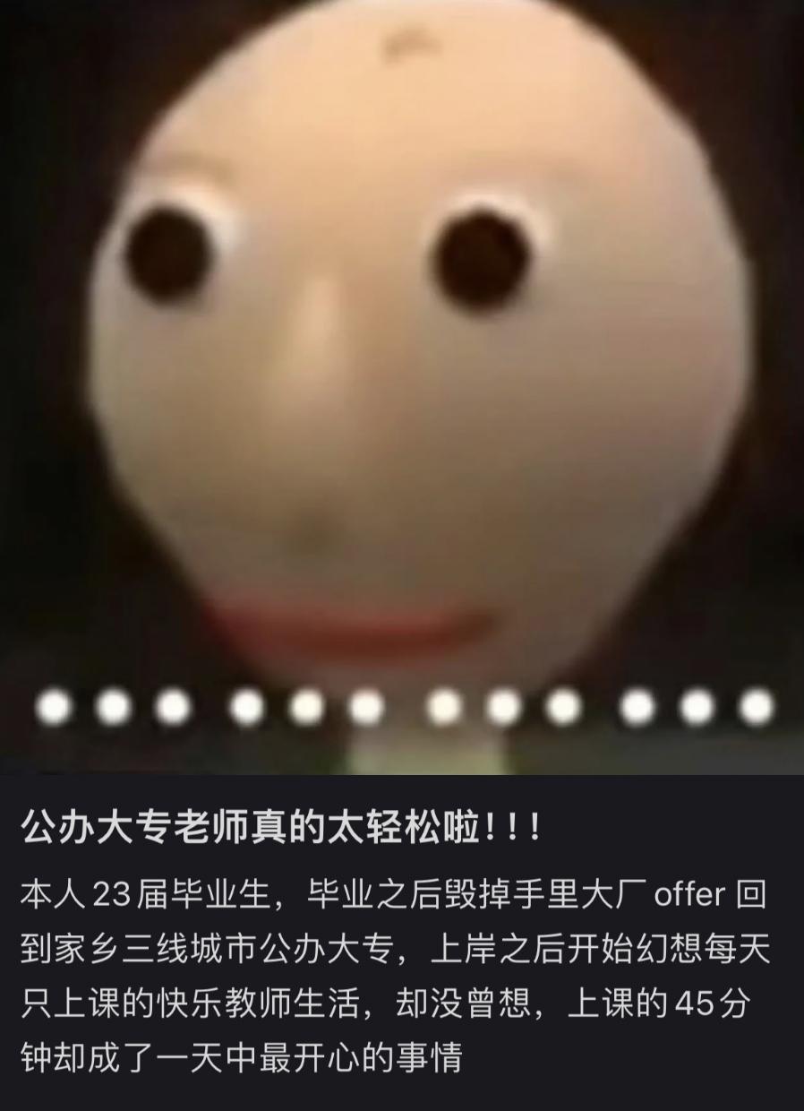 图源@大专老师的幸福生活有人入职大专后,觉得人生终于步入了正轨,唯一美中不足的是,“生活虽然变稳定了,但同时也会有些无聊。”