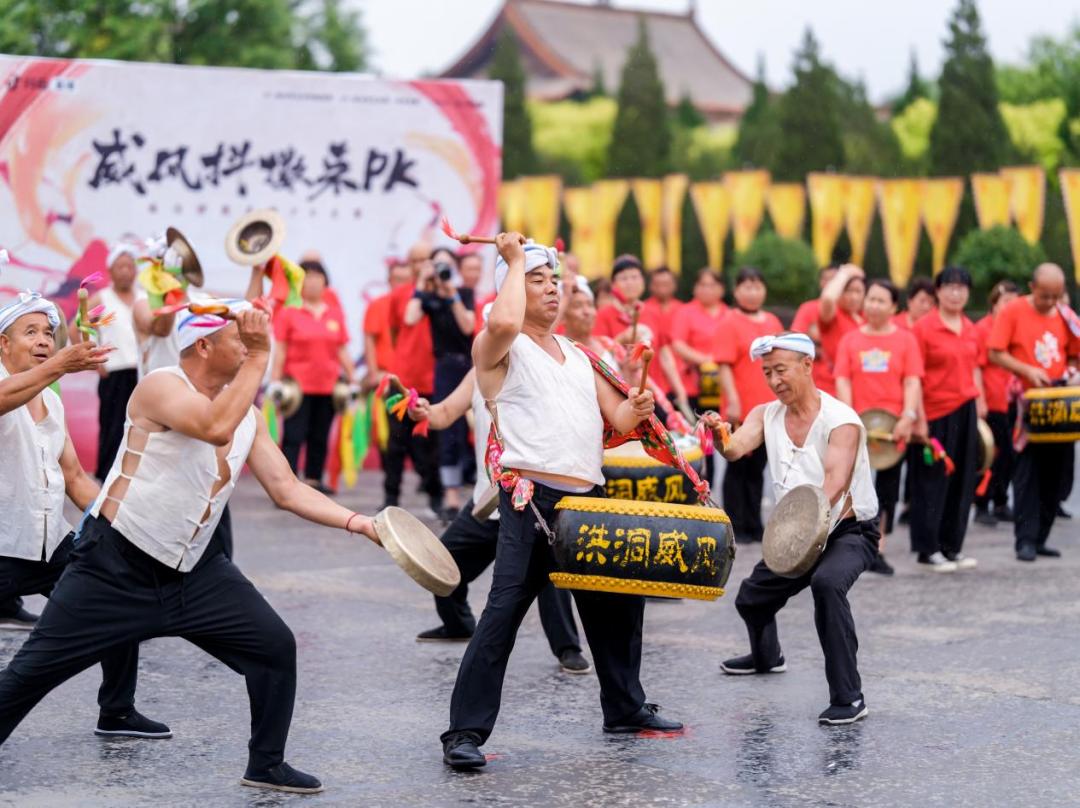 △直播间里,@洪洞传统锣鼓队与@浮山庆唐观锣鼓队 开展锣鼓PK山西临汾不仅有着深厚的历史根基,抓一把泥土就能攥出文明的汁液;还有着丰富多样的非遗艺术,街头巷尾都时不时传来鼓声、戏腔。若你直奔大同、平遥,绕道临汾,恐怕会错过山西的这一窍精魂。