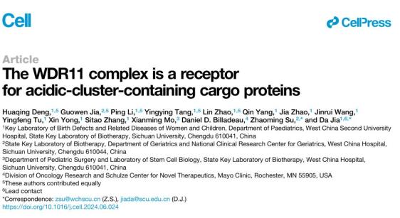 总之,该研究发现了首个可以识别特定货物蛋白基序的囊泡栓系复合物,揭示了对货物蛋白的选择性识别不仅可以发生在囊泡运输的前期(依赖于衣被蛋白),而且还可以发生在囊泡运输的后期(依赖于囊泡栓系复合物,例如WDR11)。这一前一后相互呼应,可以进一步确保了囊泡运输的准确性。据悉,四川大学的邓华清、贾国文、李萍、唐颖颖和赵琳为该篇论文的共同第一作者,通讯作者为四川大学的贾大教授和苏昭铭教授。四川大学的莫显明教授和Mayo Clinic的Daniel D. Billadeau 教授等人也为课题提供了大力支持。