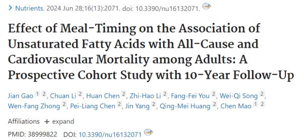 这项前瞻性队列研究使用了30,136名18岁以上的成年人的数据,其中包括来自美国全国健康与营养检查调查的参与者。数据分析显示,一天中不同时间摄入不饱和脂肪酸对健康的影响不同。
