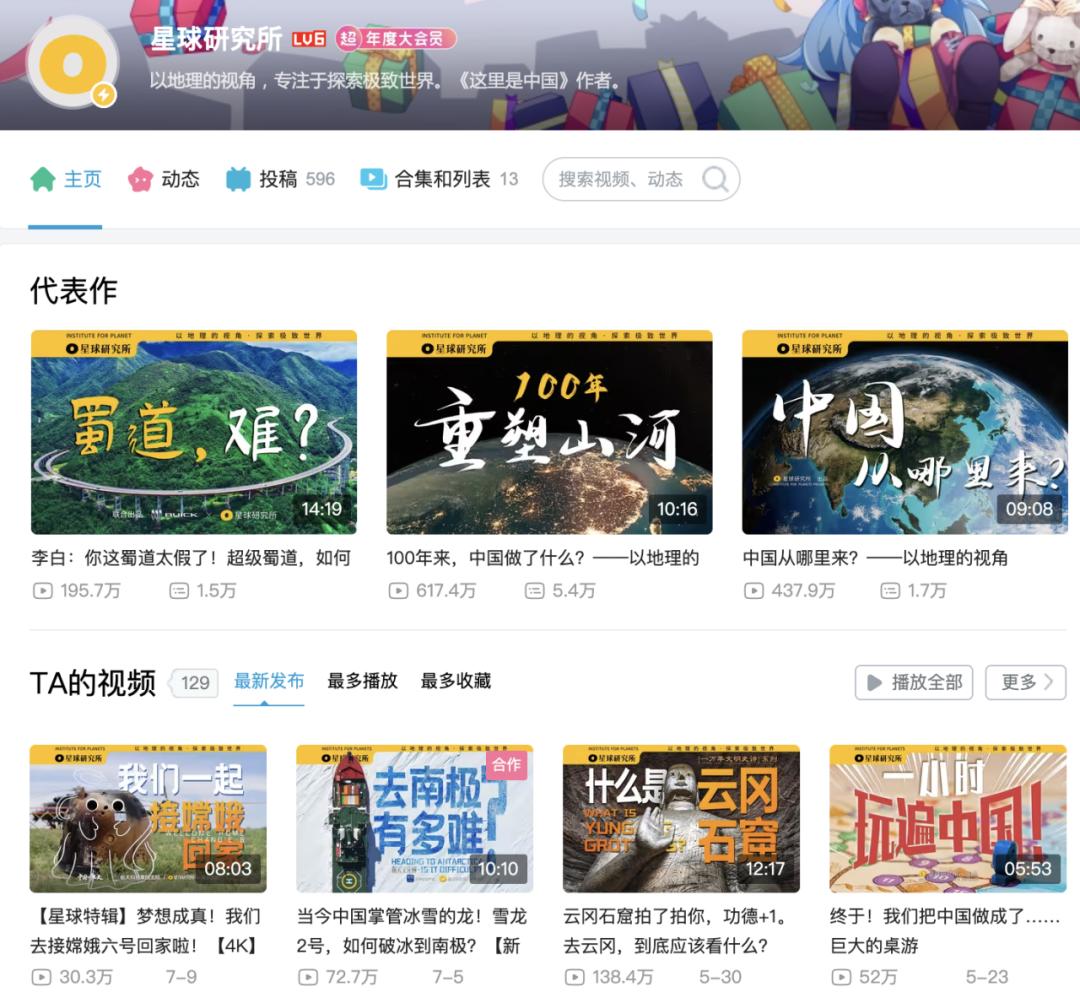 旅游、地理方面,绕不开的推荐一定是星球研究所。他家的视频很多是4K画质,配上大美中国景色,还能从中学到各种地理文化知识。如果条件允许,投屏到大屏幕上,效果更震撼。本文为澎湃号作者或机构在澎湃新闻上传并发布,仅代表该作者或机构观点,不代表澎湃新闻的观点或立场,澎湃新闻仅提供信息发布平台。申请澎湃号请用电脑访问http://renzheng.thepaper.cn。