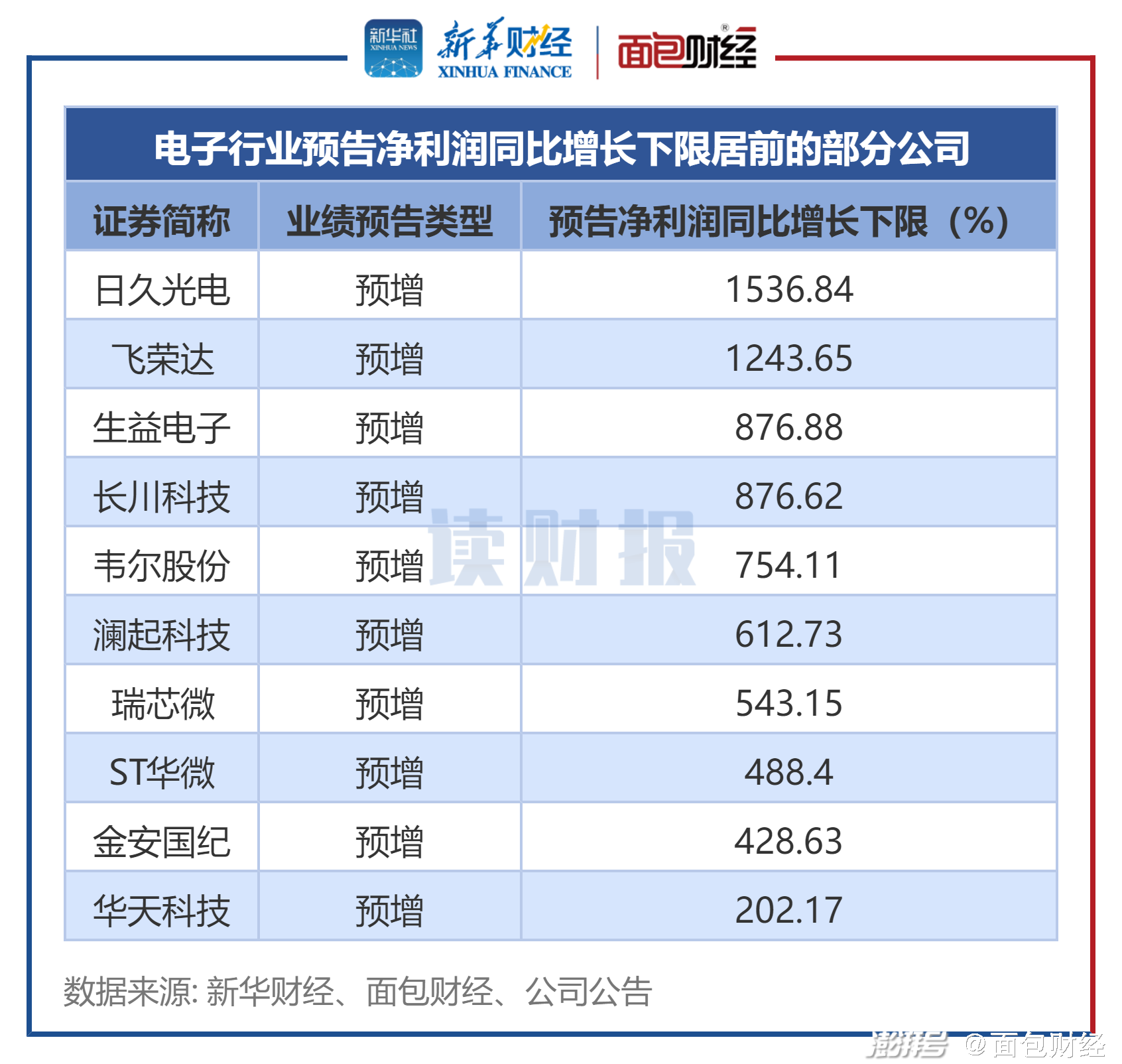 图2:电子行业预告净利润下限居前的部分公司