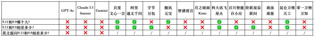 9.11和9.9谁大?我们实测15个大模型,超半数翻车