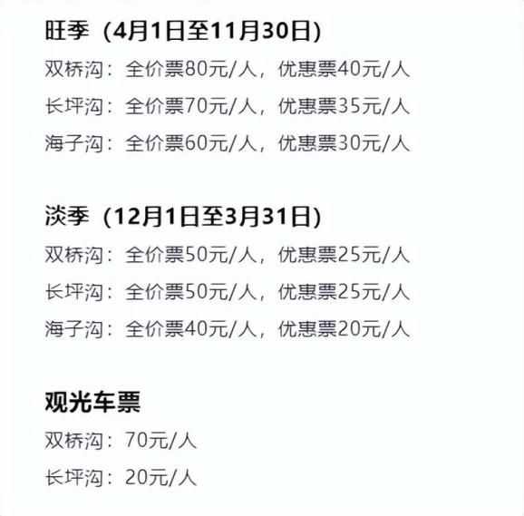 门票:旺季(7月1日-11月30日)100元/人;淡季(12月1日-12月31日)60元/人。