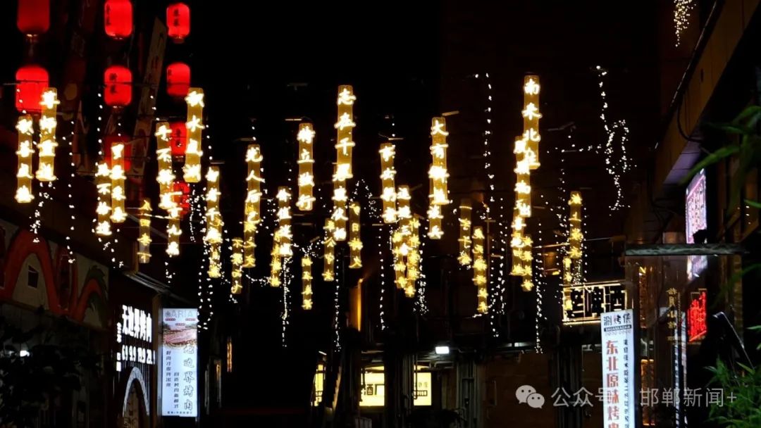 夜幕降临,华灯初上,位于光明大街与渚河路交会处的旺角商业街区,各餐饮门店忙得不亦乐乎,高大的赵邯郸故城遗址城墙、复古的邯郸啤酒厂、以彩灯扮“亮”的邯郸成语典故,都吸引了满满的人气。