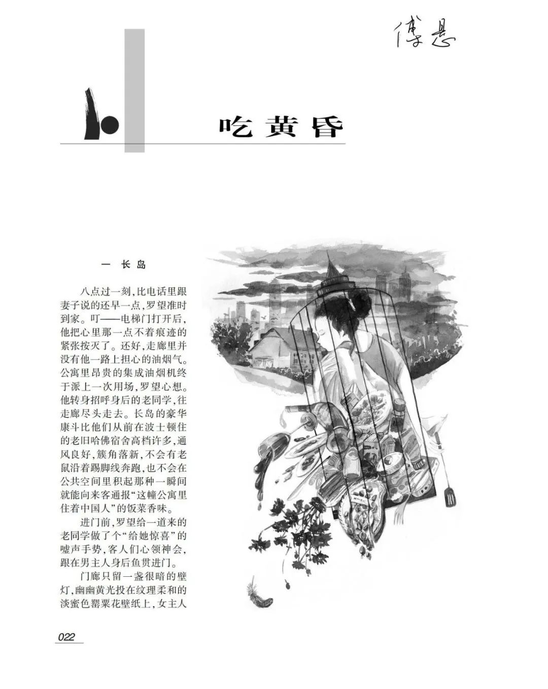 ▲ 《收获》杂志内页而问题是,社会比起学校而言,“好”的评判标准虽然存在但更加模糊,“好学生”会因为迷茫和失衡而调动起全身的情绪和心理能量去讨好一切可能的评价体系,在持续性的“失焦的讨好”下心理崩溃。《吃黄昏》中美琪没有为婚姻生活创造新的语法,选择复制粘贴“好学生”的身份规则,精确到苛刻的“做饭”就是她长久的讨好方式。一道关联了家乡技艺与记忆的“作业”——炖蛋造成的悲剧后果,不过是压倒美琪的最后一根稻草。
