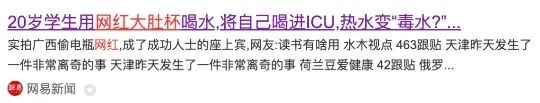 因为使用大肚杯导致的悲剧有很多,比如之前就有人因为长期用这种杯子喝水,将自己喝进ICU的。